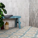 Lovingly named after the Spanish word for "wine cellar," our Bodega tiles feature a colourful mix of ivory, sage green and cerulean, beautifully finished in a flat matt glaze.