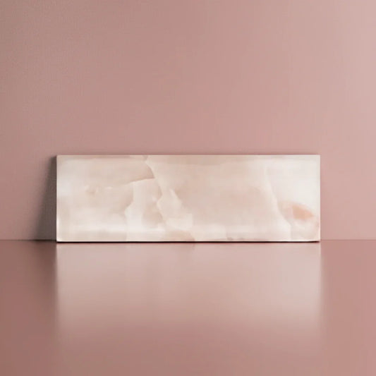 Our Onyx Metro tiles combine the sleek shape of classic metro design with the luxurious depth of onyx stone. The Delicate veining and a glossy, light-reflective surface create a sophisticated look .
