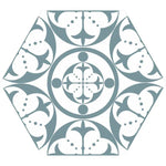 A soft sky-blue in colour, our Parisian Med Blue tiles are a beautiful alternative to the standard square or brick-shaped format, showcasing a delicate geometric pattern within a stylish hexagonal design.