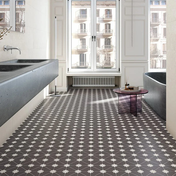 Add a touch of elegance and modern flair to your interiors with the Lotus Black Wall and Floor Tiles. Measuring 20x20cm, these exquisite tiles feature a bold black base adorned with intricate, timeless flower patterns that create a striking visual impact. Perfect for enhancing the aesthetic of any room, these versatile tiles effortlessly blend style and function.