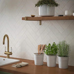 Dorset Bone Gloss Tiles offer a warm neutral that sits between white and beige, perfect for soft, timeless interiors. From Metro Tiles UK, these 7.5x30cm ceramic tiles have a high-gloss finish with a subtle handcrafted edge.