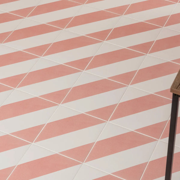 Striped Pink Tile 22x22cm Fun, fresh, and durable, the Striped Pink Tile 22x22cm is a porcelain tile designed to add personality to any room. Its soft pink stripes look stunning...